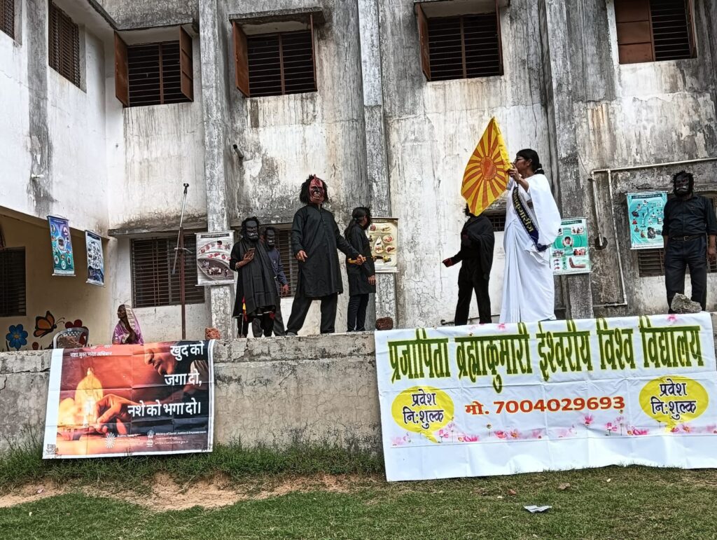जिसमें संस्था के मुख्य वक्ता ने बताया कि कैसे बच्चे बडे सभी मोबाइल और इंटरनेट पर अधिक समय व्यतीत कर रहे हैं जिससे पढ़ाई और जरूरी काम बाधीत हो रहा है तथा शराब गुटका तंबाकू खैनी सिगरेट खा पीकर अपने भविष्य के साथ खिलवाड़ कर रहे हैं जिससे कैंसर किडनी फेलियर होने के बाद अस्पतालो के चक्कर लगा कर मेहनत का पैसा और समय दोनों बर्बाद हो रहा है अपने बच्चों के भविष्य के साथ खिलवाड़ कर रहे हैं नाटक के माध्यम से यह भी बताया गया कि कैसे मेडिटेशन राजयोग करके अपने जीवन को सफल कर सकते हैं